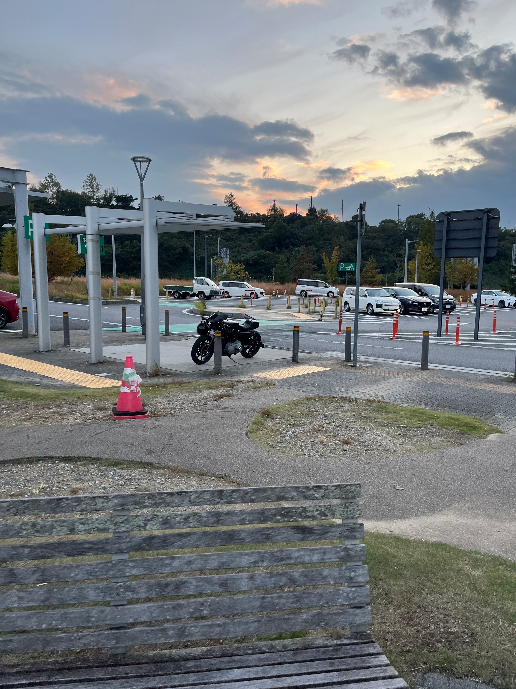 約2時間の東京滞在を後に、すぐ帰路へ。トボトボ海老名SAへ入ったら後ろから見たことあるバイクが。