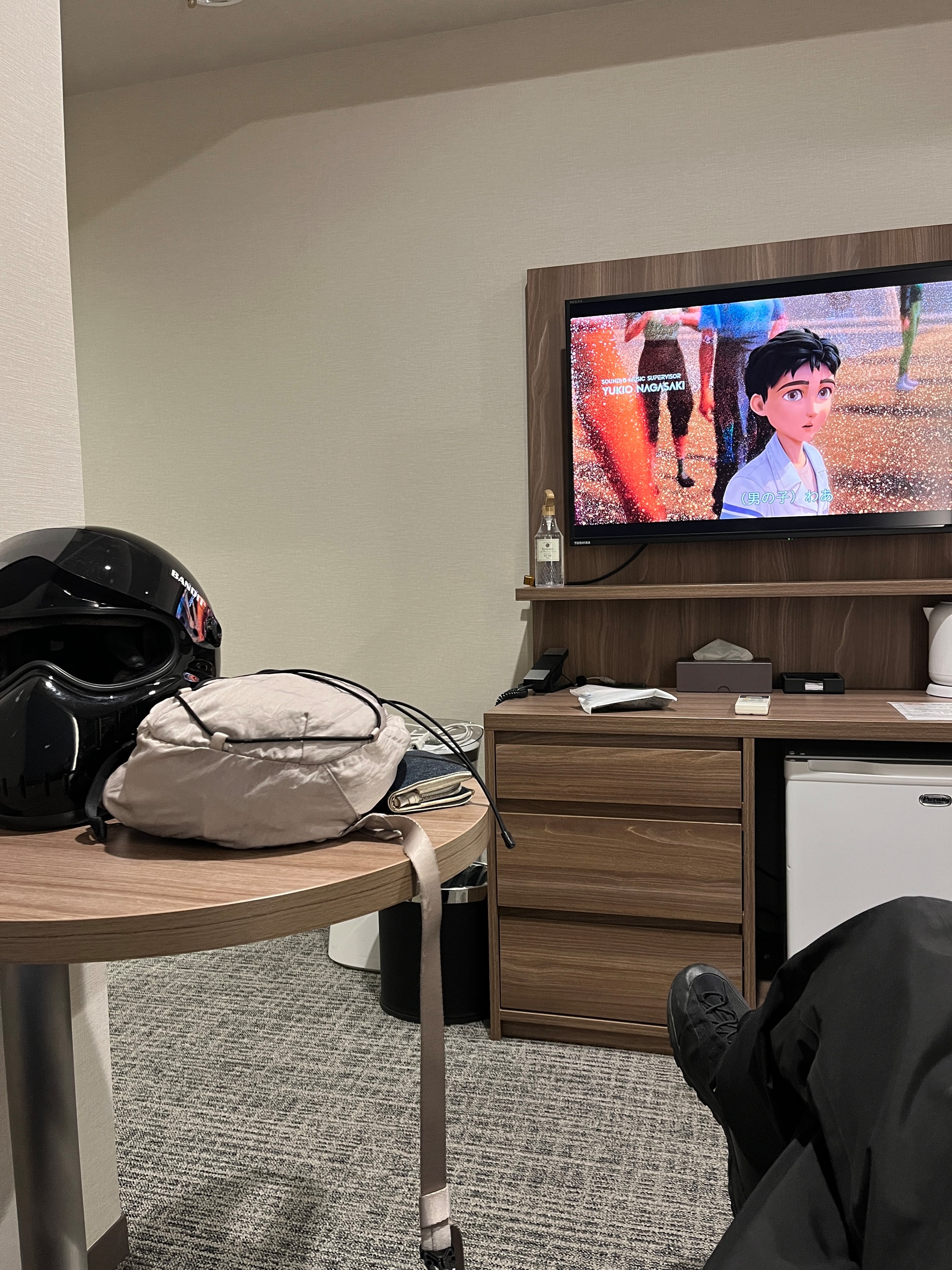 静岡は気力で乗り越えホテルへ駆け込む。シングルベッドにギチギチの枕2個。いるかな?