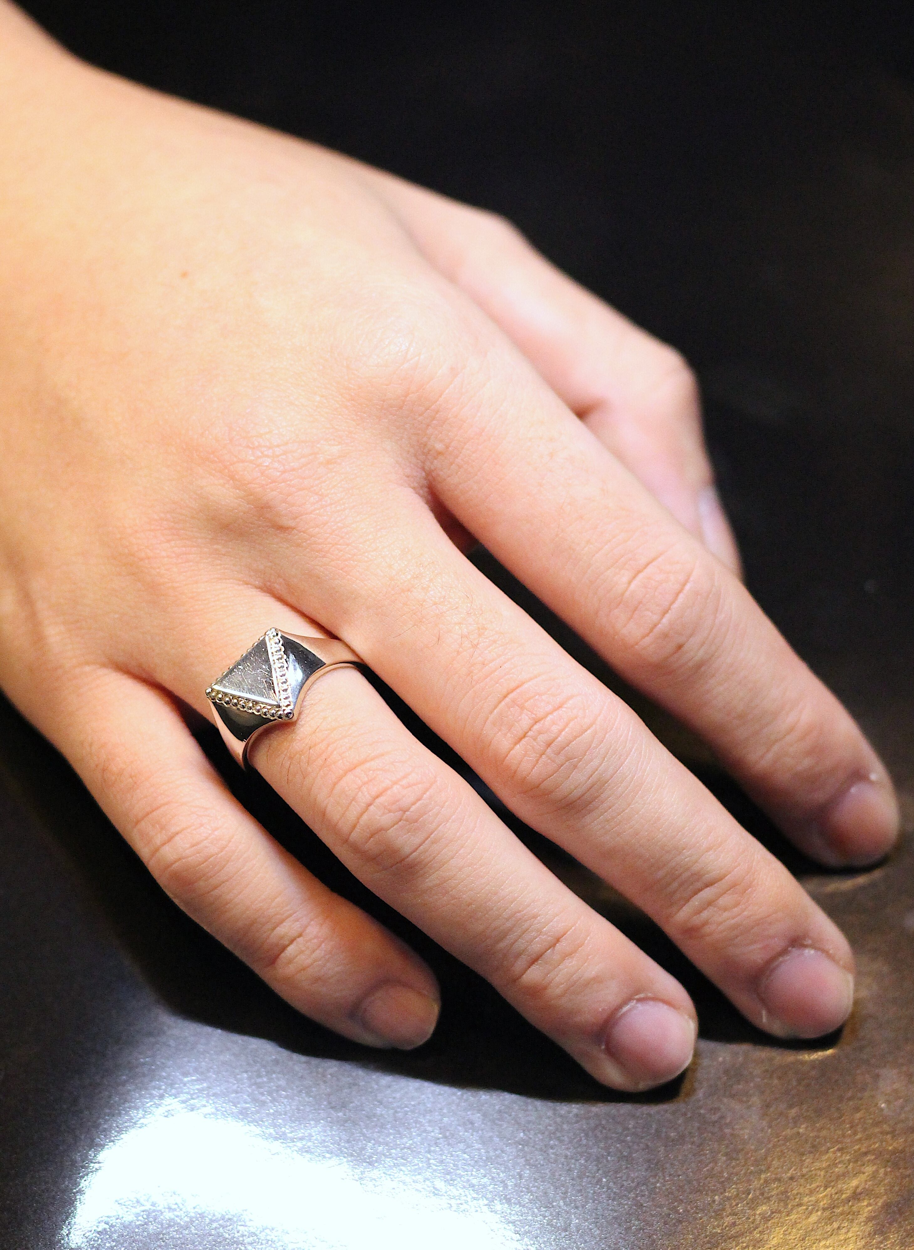 HORIZON / BEADED TRIANGLE SIGNET RING