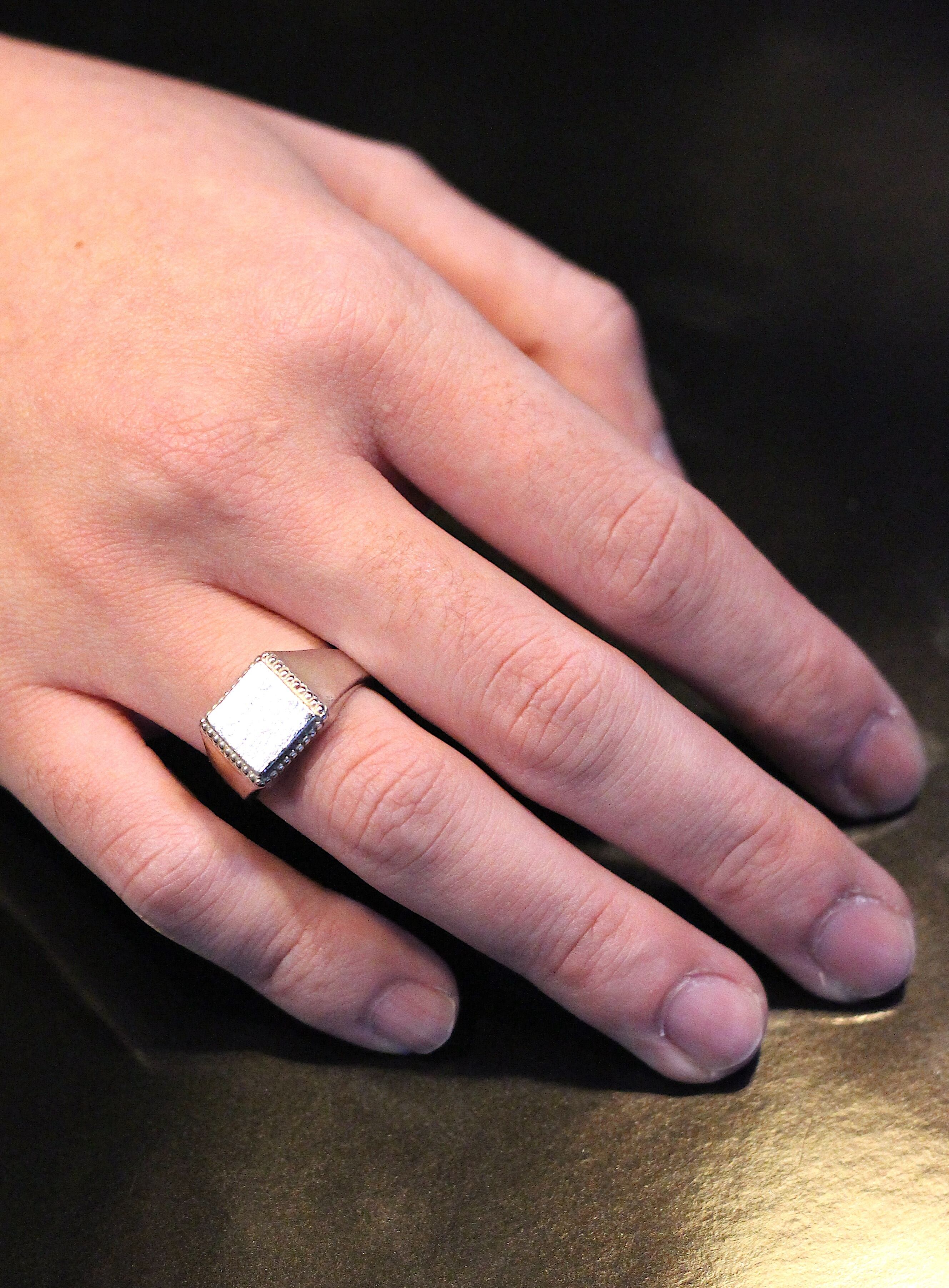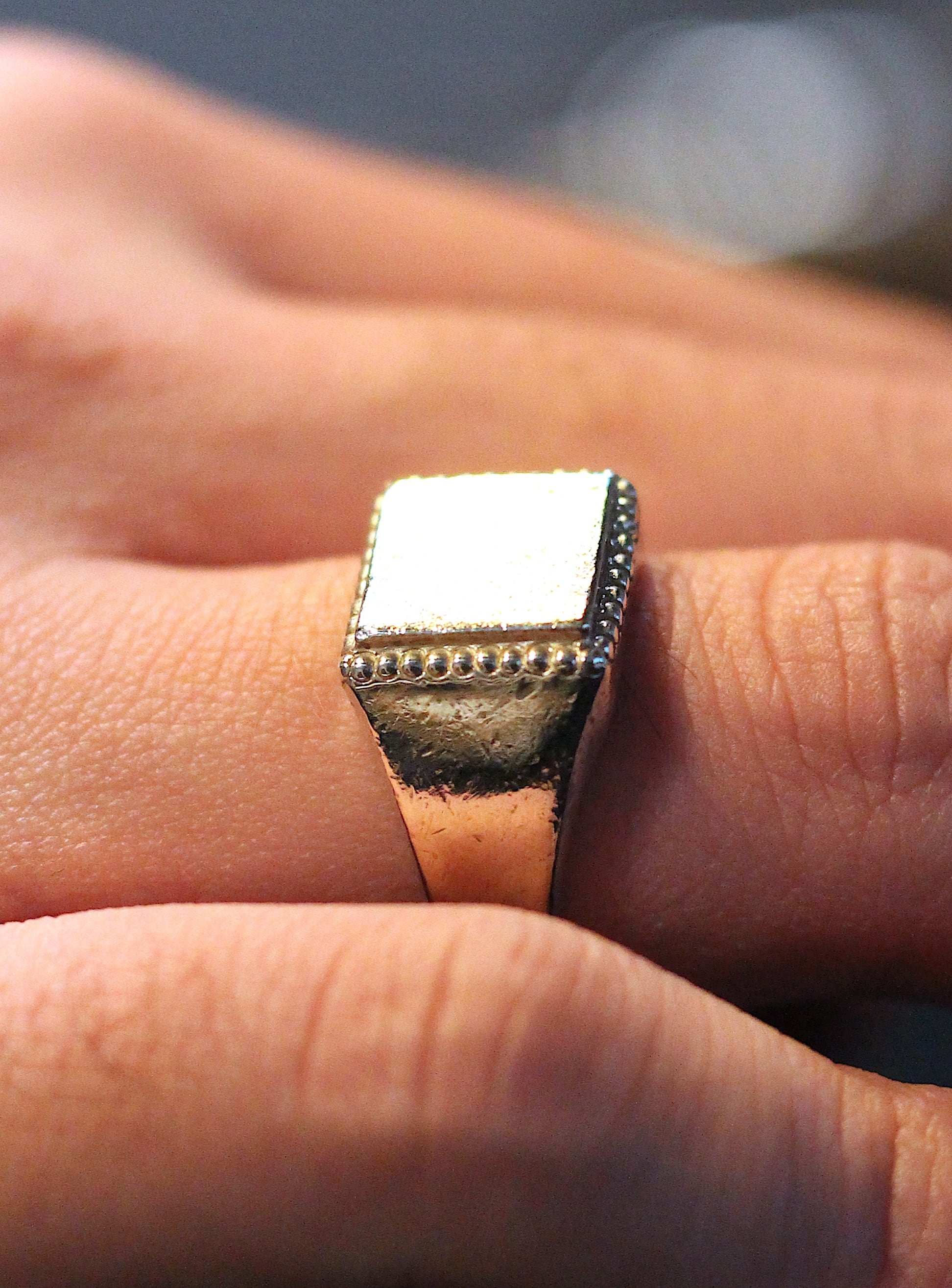 HORIZON / BEADED SQUARE SIGNET RING